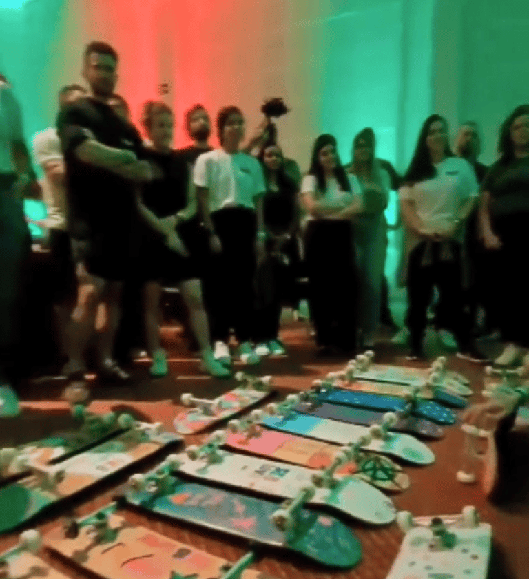 O momento mais emocionante foi a revelação de que os skates seriam doados para a nossa ONG, escolhida pelo protagonismo feminino e pelas ações sociais, esportivas e culturais com meninas, mulheres e pessoas lgbtqiapn+. Além disso, nossa equipe esteve presente durante toda a atividade, ajudando na montagem dos skates, e compartilhando a história da Associação das Minas em um encontro marcado por propósito, inclusão e conexão.