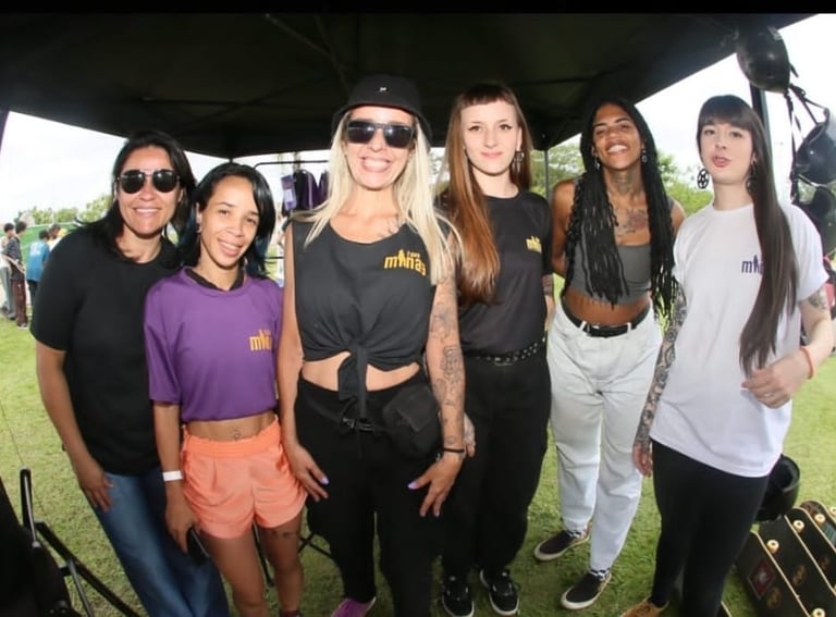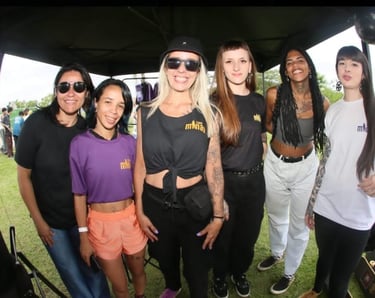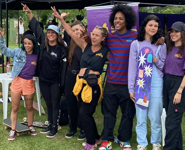 No Girl Skate Jam, a Associação das Minas criou um espaço acolhedor para competidoras e público, promovendo inclusão e diversidade. Oferecemos trançagem de cabelos gratuitamente, celebrando a cultura afro-brasileira, além de tendas de descanso, exposição de arte, feira mix e oficinas de balanceboard e customização de lixas, criando um ambiente seguro e integrador para todos.
